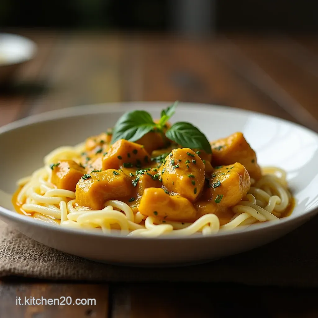 Immaginate bocconi teneri di pollo immersi in una salsa dorata, ricca, che avvolge il palato con note calde e leggermente terrose. Questo piatto è l'epitome del comfort food: sa di casa, ma con l'eccitazione di sapori lontani.