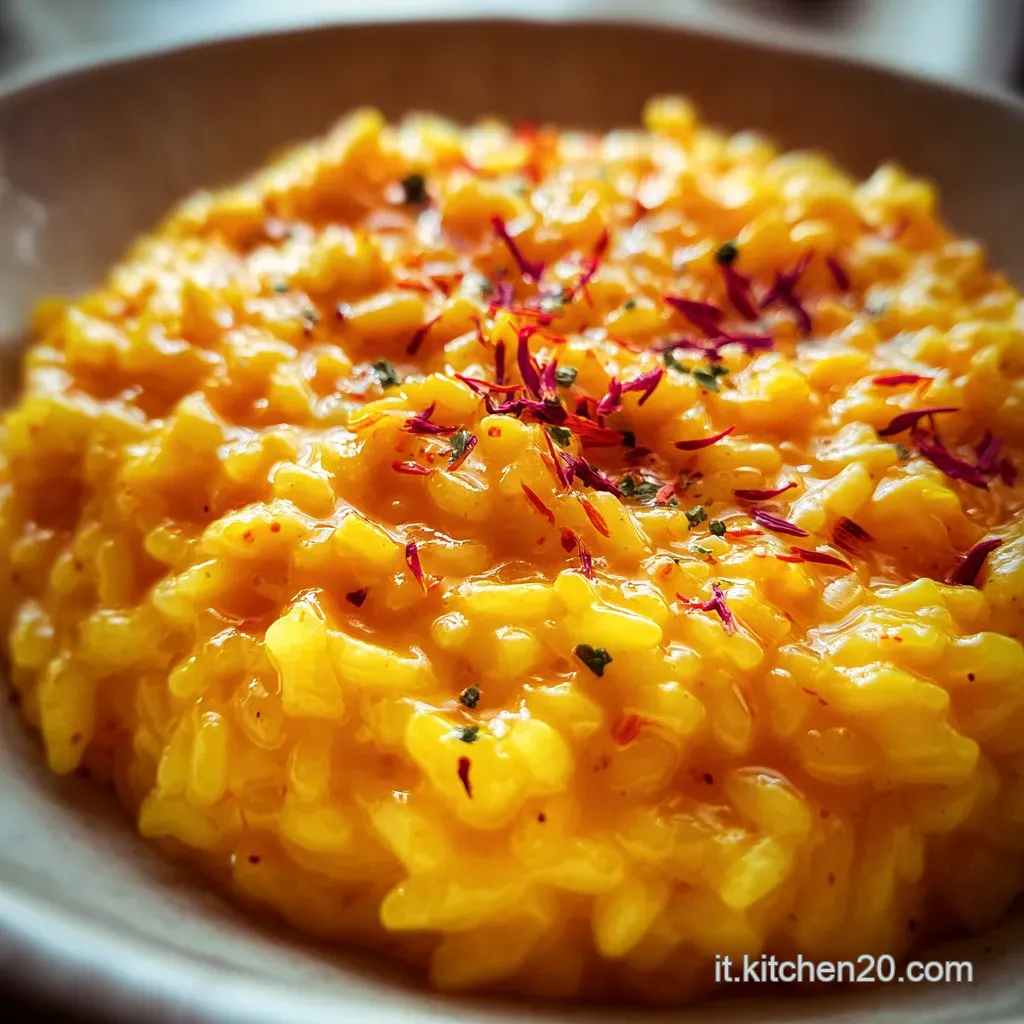 Guarnisci con qualche pistillo di zafferano al centro e, se vuoi esagerare, una grattugiata di midollo di bue cotto a parte, come vuole la tradizione milanese più pura.