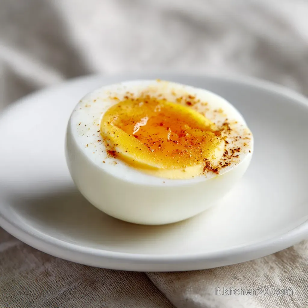 - 1 pizzico di sale Maldon: Perché questo? I suoi cristalli a piramide offrono un contrasto croccante irresistibile sul tuorlo vellutato.